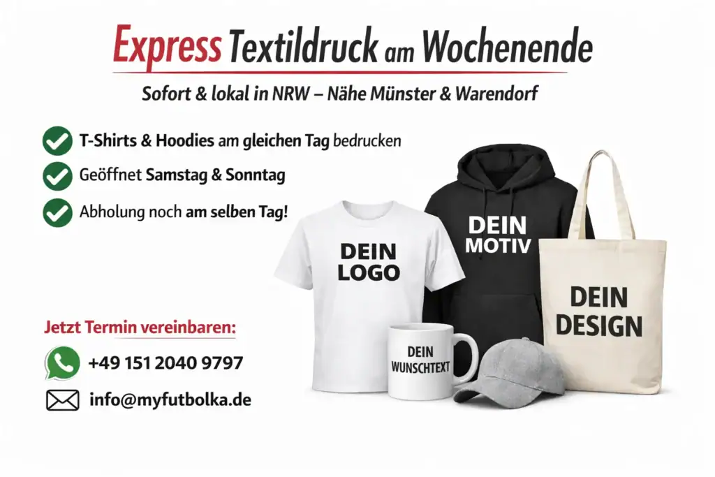 Express-Textildruck am Wochenende – sofort & lokal in NRW